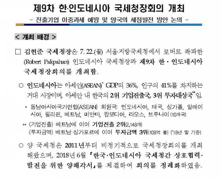 제9차 한·인도네시아 국세청장회의 개최 페이지 정보 작성자 태경회계법인 댓글 0건 조회 5,917회 작성일 19-08-02 10:18 본문 . [이 게시물은 태경회계법인님에 의해 2022-08-01 16:41:21 공지사항에서 이동 됨] [이 게시물은 태경회계법인님에 의해 2022-08-01 16:45:40 자료실에서 이동 됨] 목록 이전글국세청, 반월·시화국가산업단지 세정지원 간담회 개최 19.08.02 다음글민생침해 탈세혐의자 163명 전국 동시 세무조사 착수 19.08.02 댓글목록 댓글목록 등록된 댓글이 없습니다.
